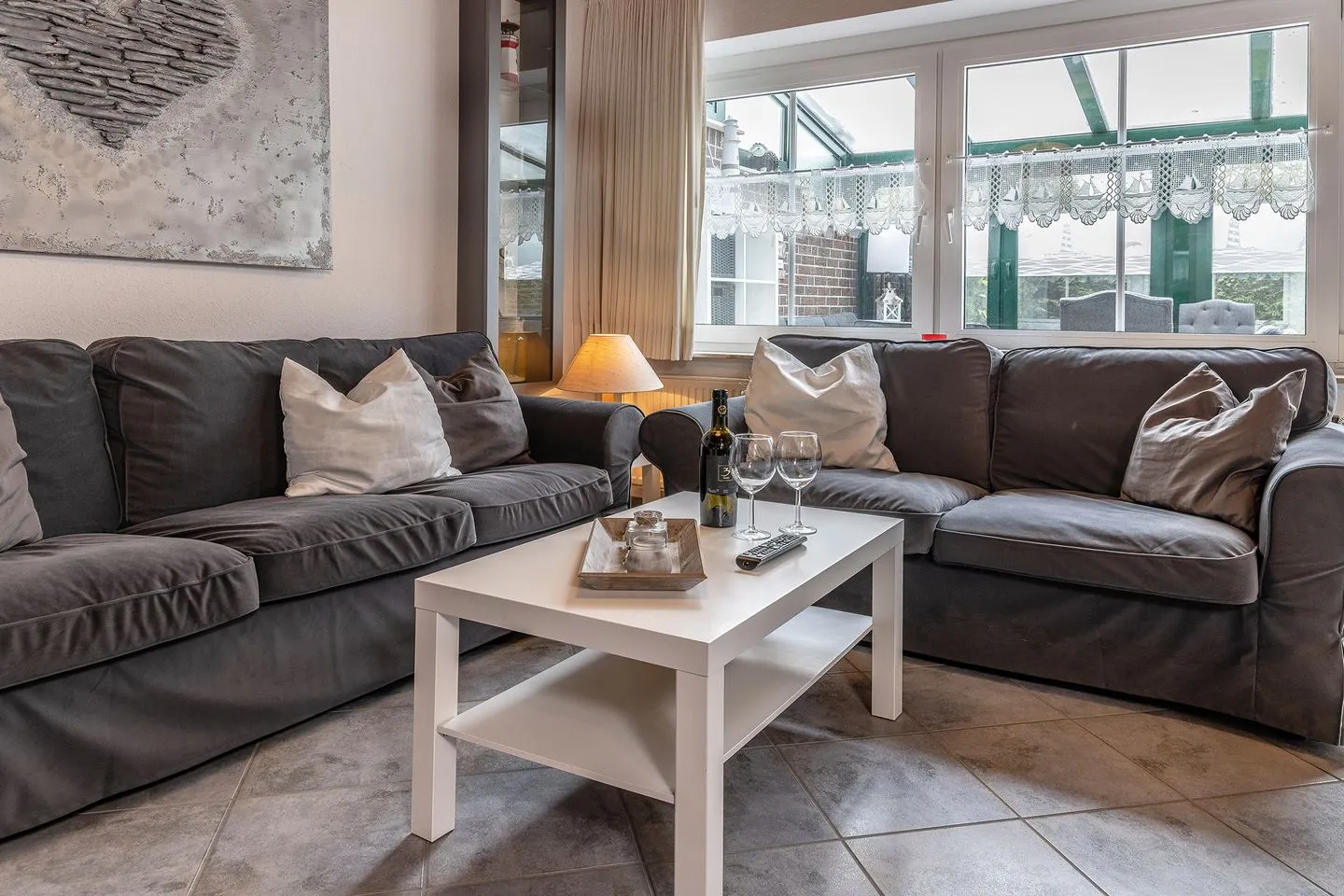 Diese moderne, liebevoll eingerichtete Doppelhaushälfte bietet Platz für bis zu 7 Personen plus Kleinkind. Highlight ist der beheizte Wintergarten mit Blick ins Grüne.