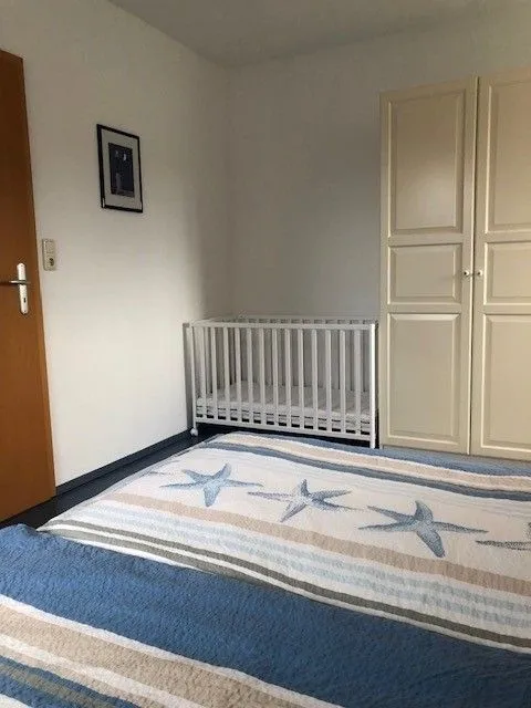 1 Schlafzimmer mit Doppelbett, 1 Schlafzimmer mit 2 Einzelbetten, zustellbares Kinderbett, Latexmatratzen, allergikerfreundliches Bettzeug, Bad (Fußbodenheizung) mit Dusche und WC.